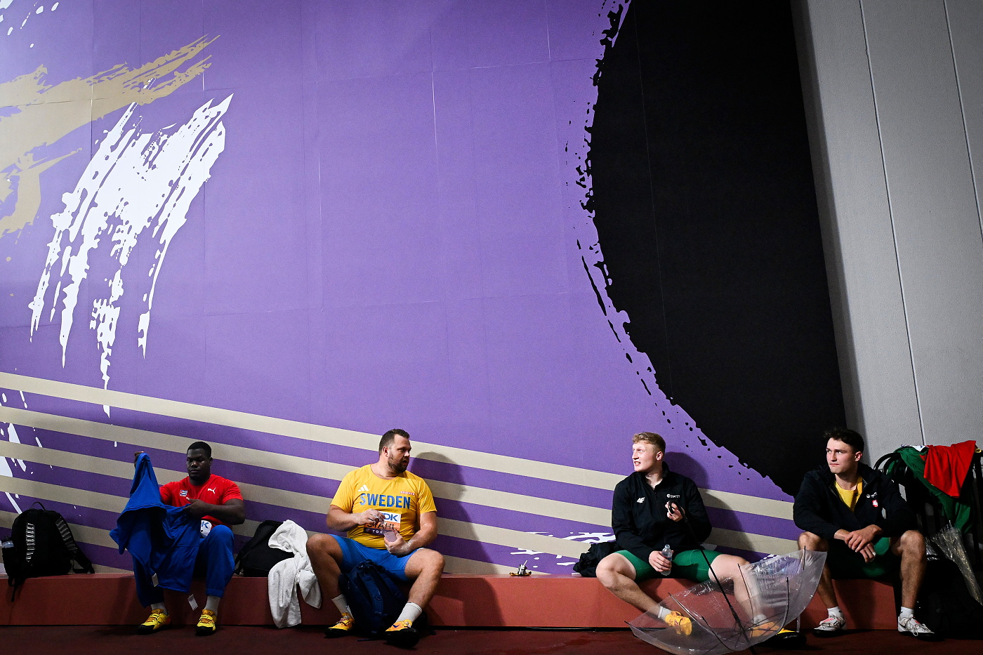 Efter två timmars försening drog Daniel Ståhl till med nästan 70 meter i sitt första kast. Många trodde det var ett guldkast i de svåra förhållandena med regn men det var ett knappt övertramp.