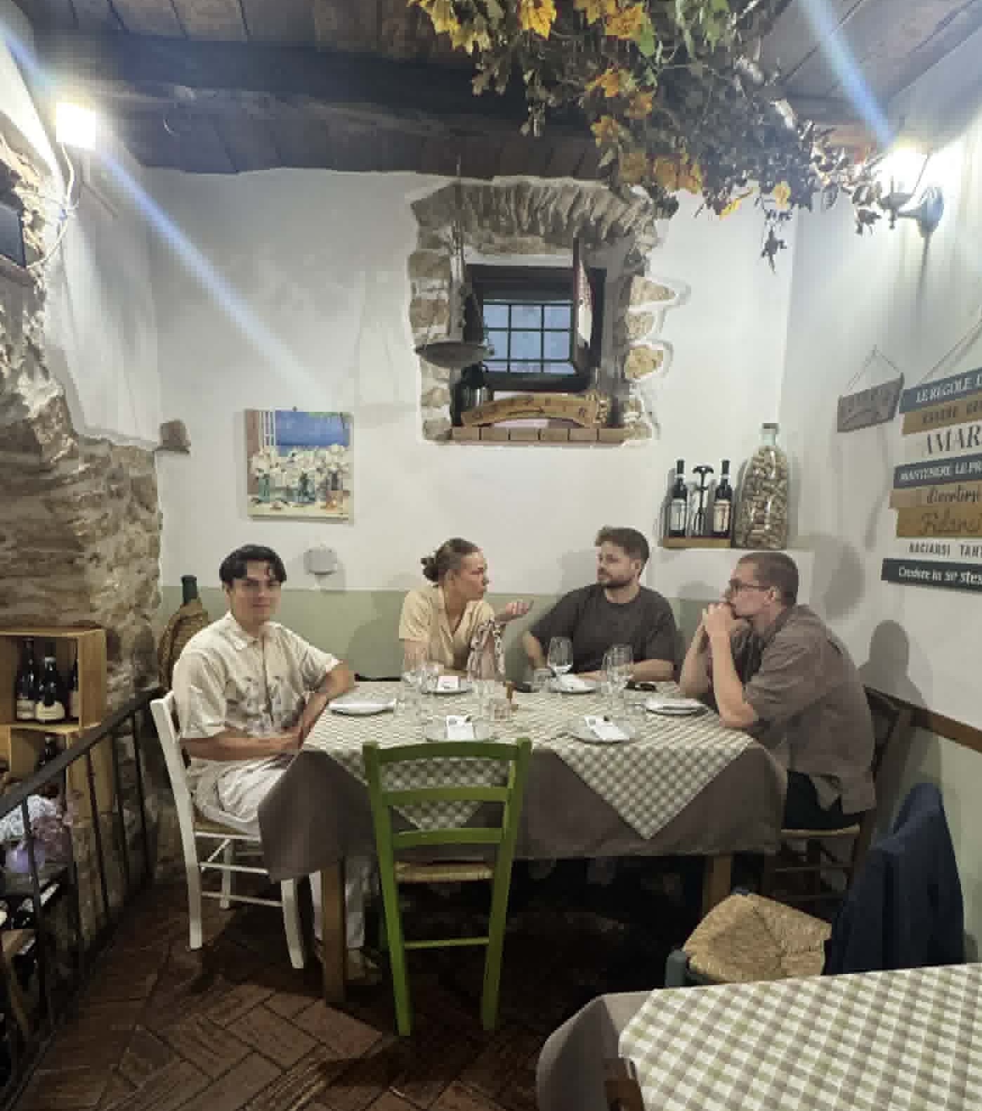 Middag på stan. Edvin Assarsson, Filippa Sivnert, James Gaudiello och Max Hrelja