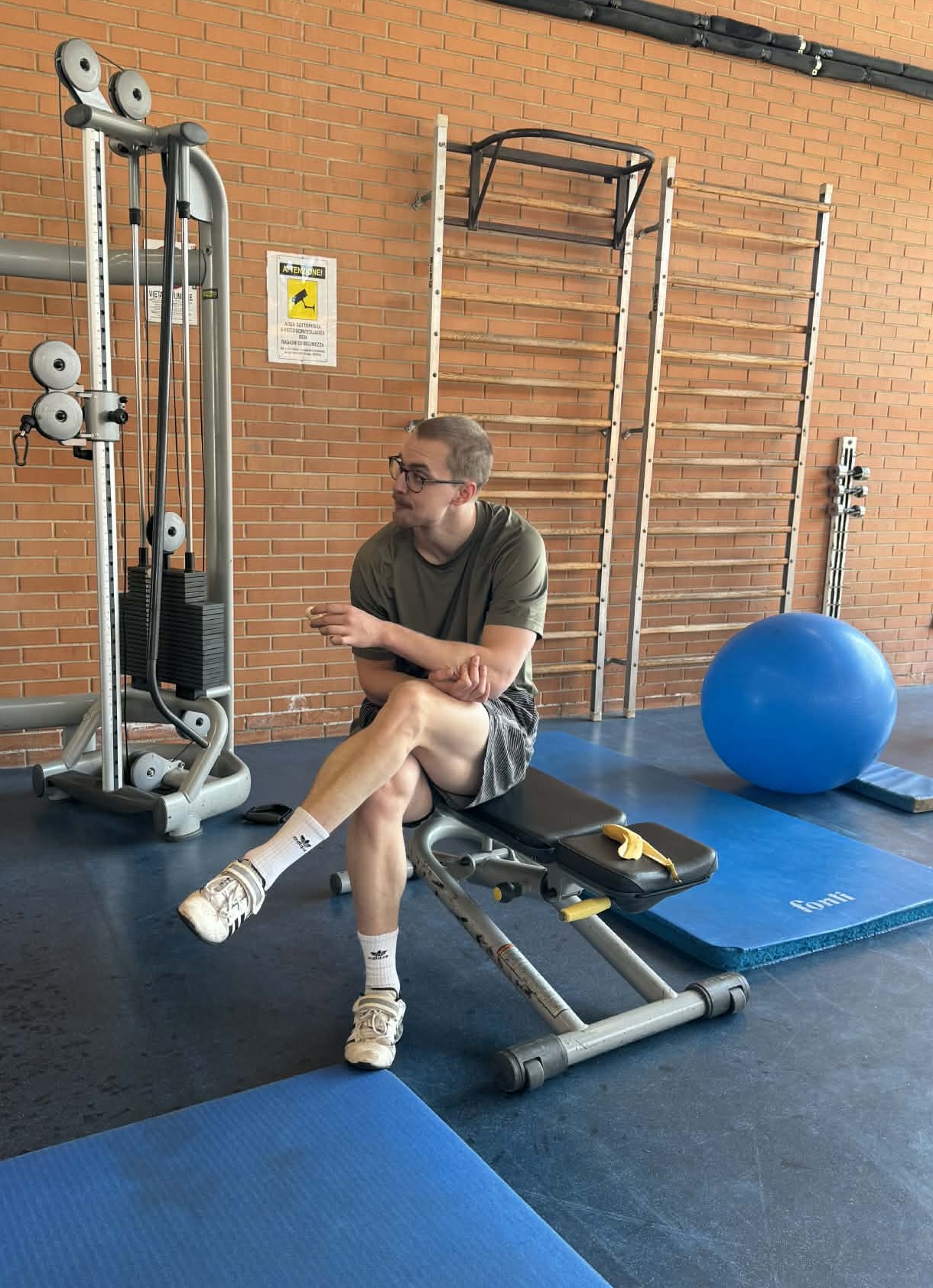 En lite hård bana, gått om utrustning som vi får låna från deras förråd. Två gym där man har fått boka tider innan vi kom ner, men man brukar kunna komma in även på tider man ej har bokat.