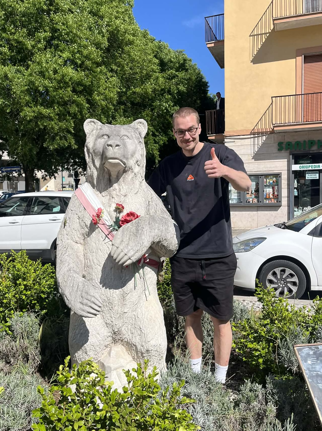 – Under vilodagen var vi och besökte ett kloster där ett av de största slagen var under andra världskriget. Bland annat involverade detta slaget en björn som hjälpte Polen, den statyn tog vi absolut en bild med.